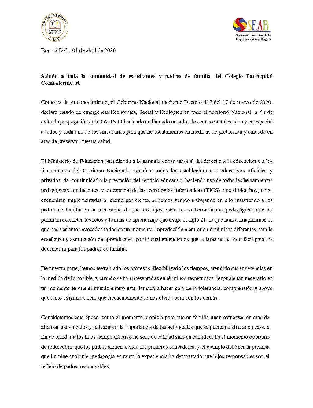 Comunicado Colegio C.D.C. 31 de Marzo de 2020 Like 0 Dislike 0 Otros artículosBono Solidario C.D.C.30 de Septiembre de 2020 Entrega de Boletines29 de Septiembre de 2020