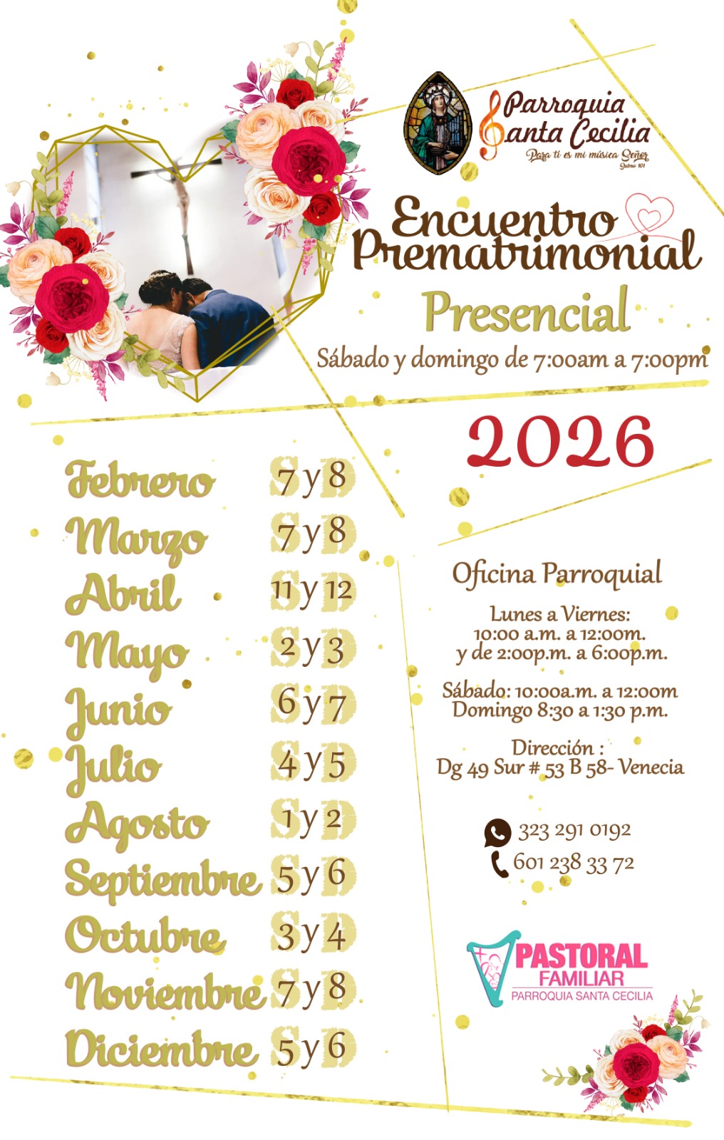 PROGRAMACIÓN DE LOS ENCUENTROS PREMATRIMONIALES AÑO 2026