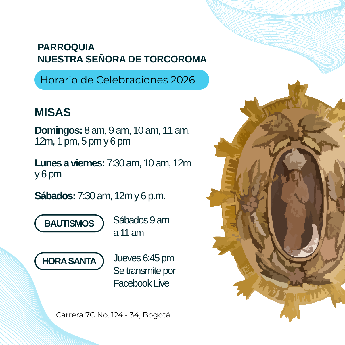 Horario de Misas y Hora Santa / 2026 3 de Enero de 2026 Ésta es tu comunidad parroquial, ¡queremos ser tu lugar de encuentro con Dios, visítanos!Sólo se transmite la Hora Santa los jueves a las 6:30 p.m. en nuestro canal de 👉 Facebook Like 0 Dislike 0 Otros artículosEl 3 de enero se celebra el Santísimo Nombre de Jesús3 de Enero de 2026 Fiesta de la Sagrada Familia27 de Diciembre de 2025La fiesta de la Sagrada Familia de Jesús, María y José se celebra el domingo después de Navidad.