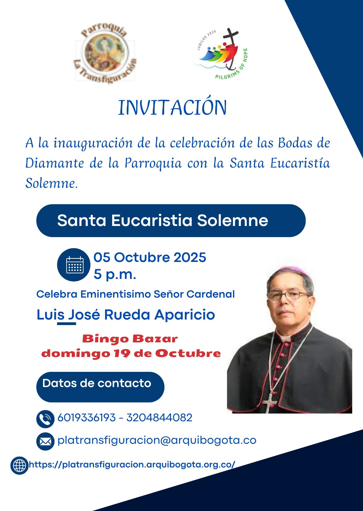 NoticiasCELEBRACION DE LAS BODAS DE DIAMANTE22 de Septiembre de 2025El 9 de Octubre de 1965 fue erigida parroquia con el nombre de La Transfiguracion. AutorJACUME Like 0 Dislike 0